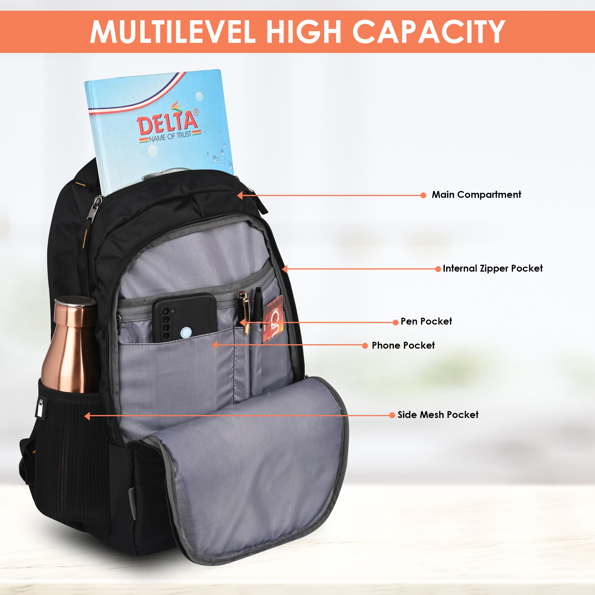 | Multiple Compartments | Comes with multiple pockets to keep items organized like stationery, bottles, and gadgets. |
