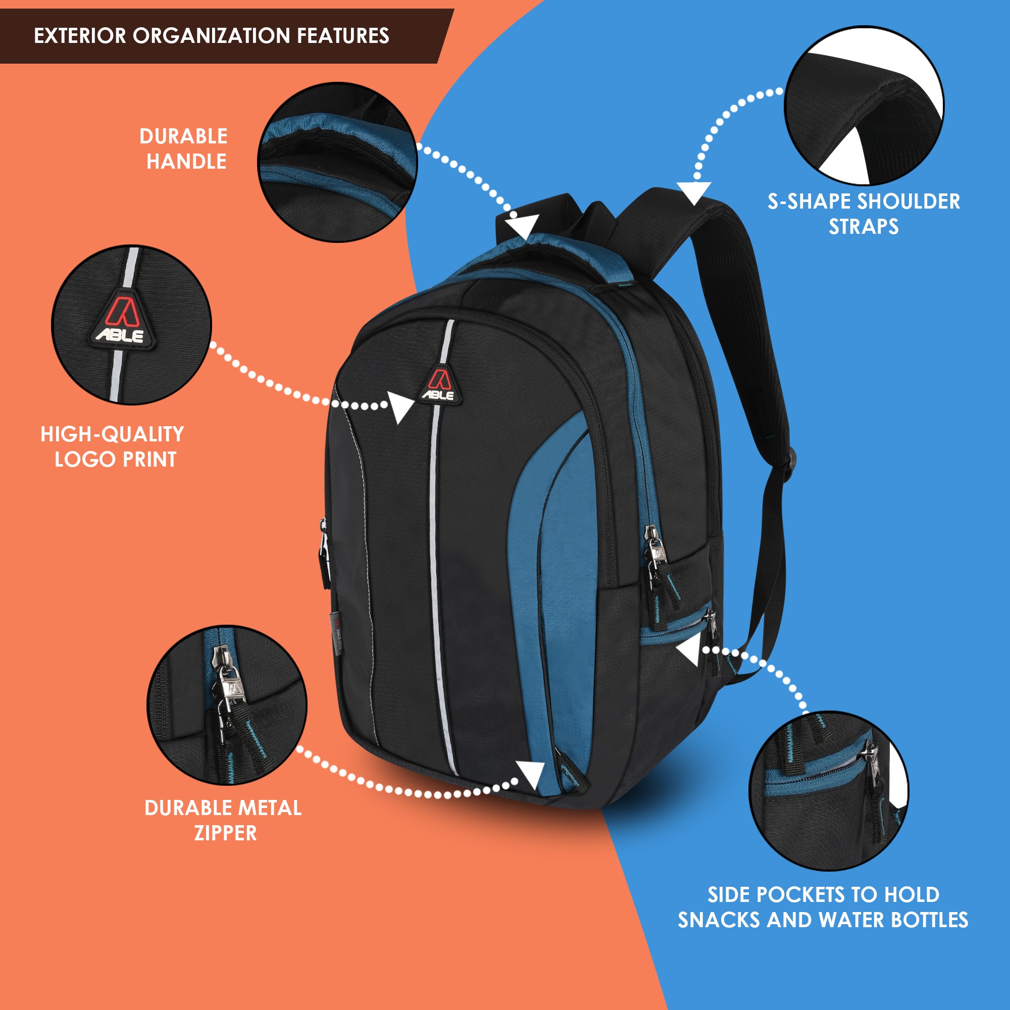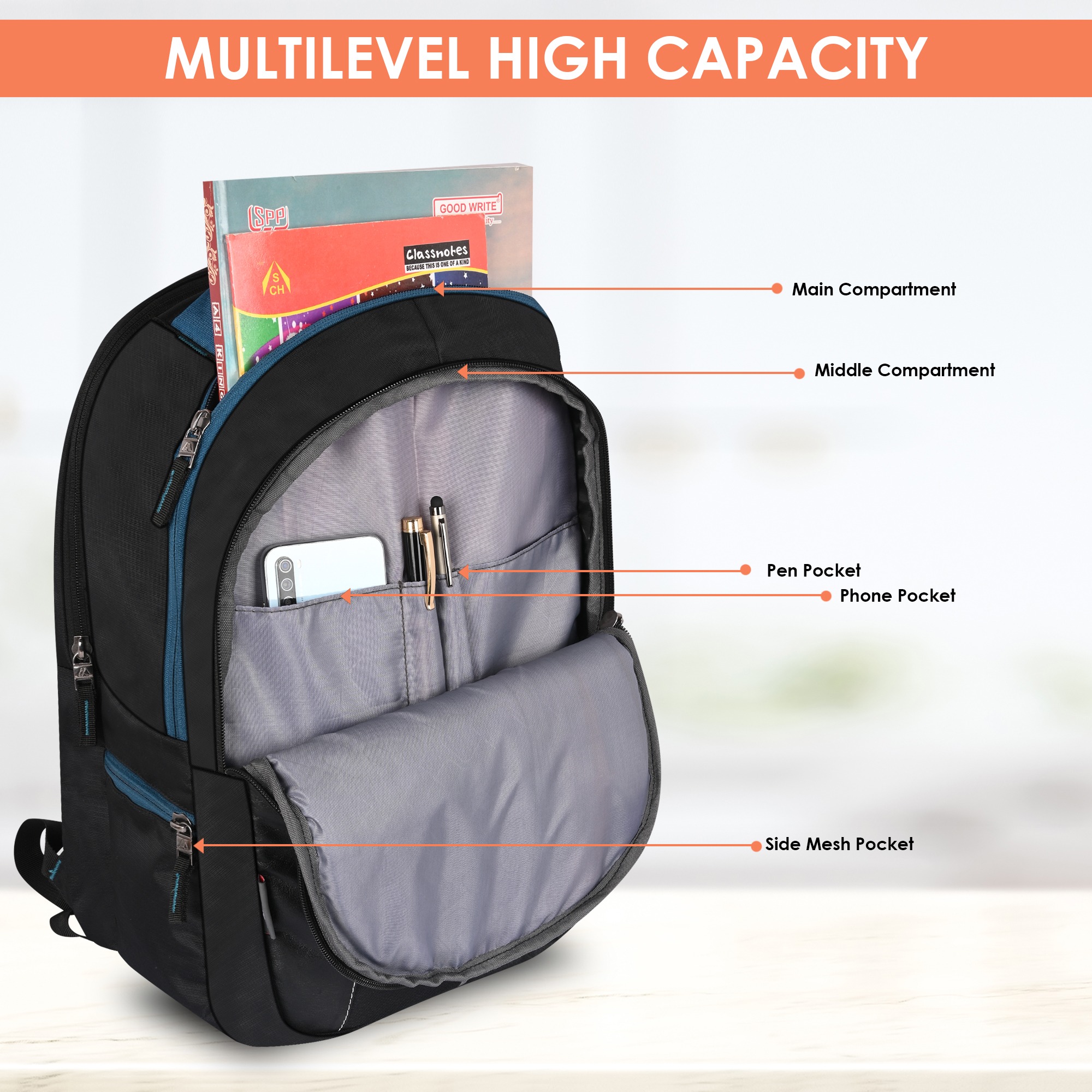 | Multiple Compartments | Comes with multiple pockets to keep items organized like stationery, bottles, and gadgets. |