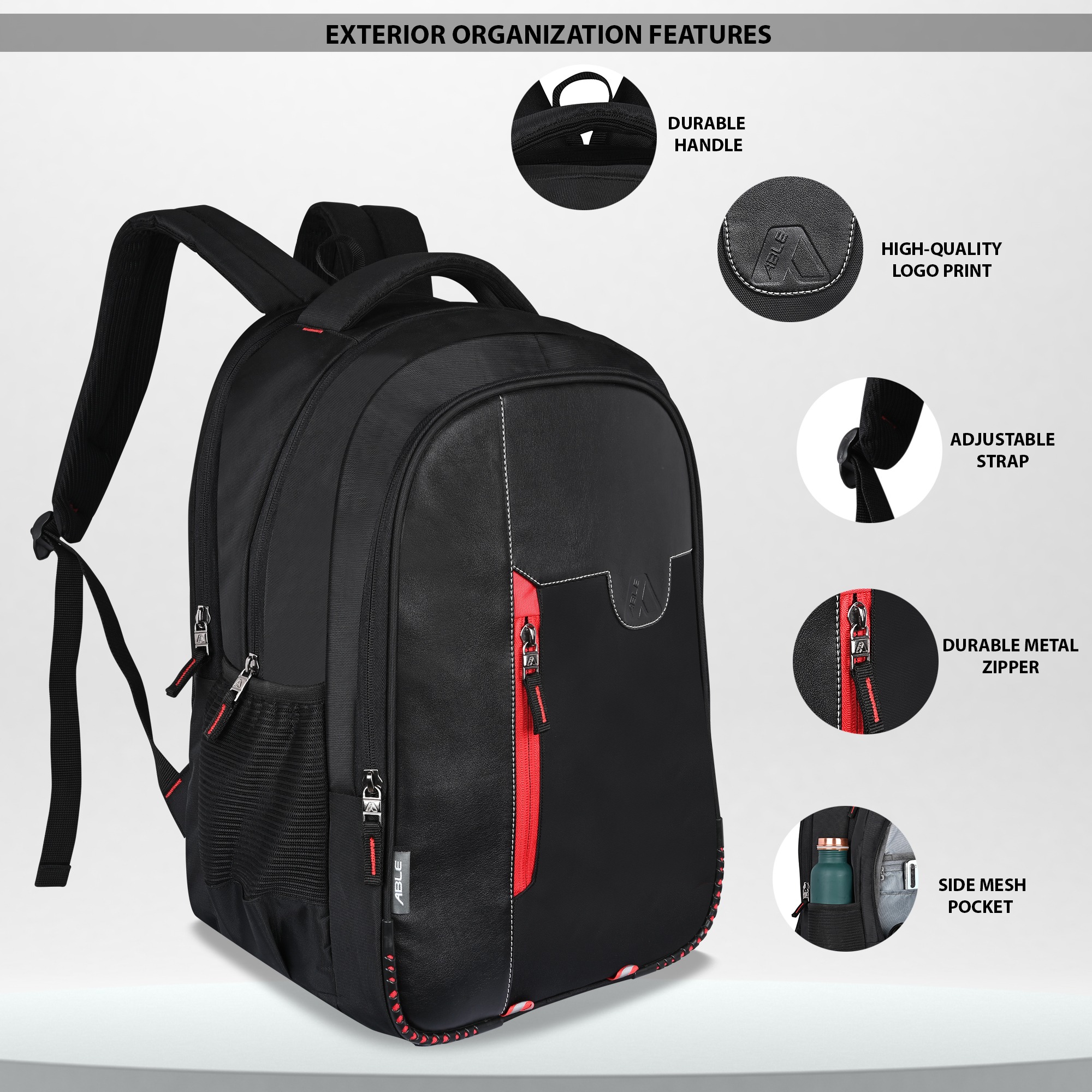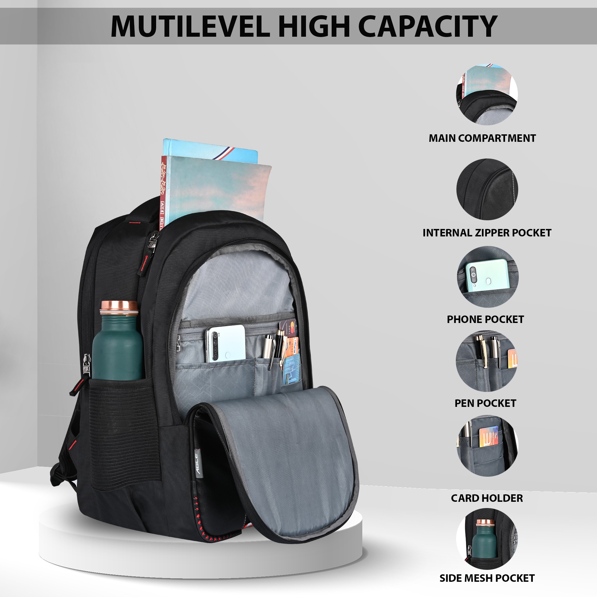 Multiple Compartments Comes with multiple pockets to keep items organized like stationery, bottles, and gadgets.