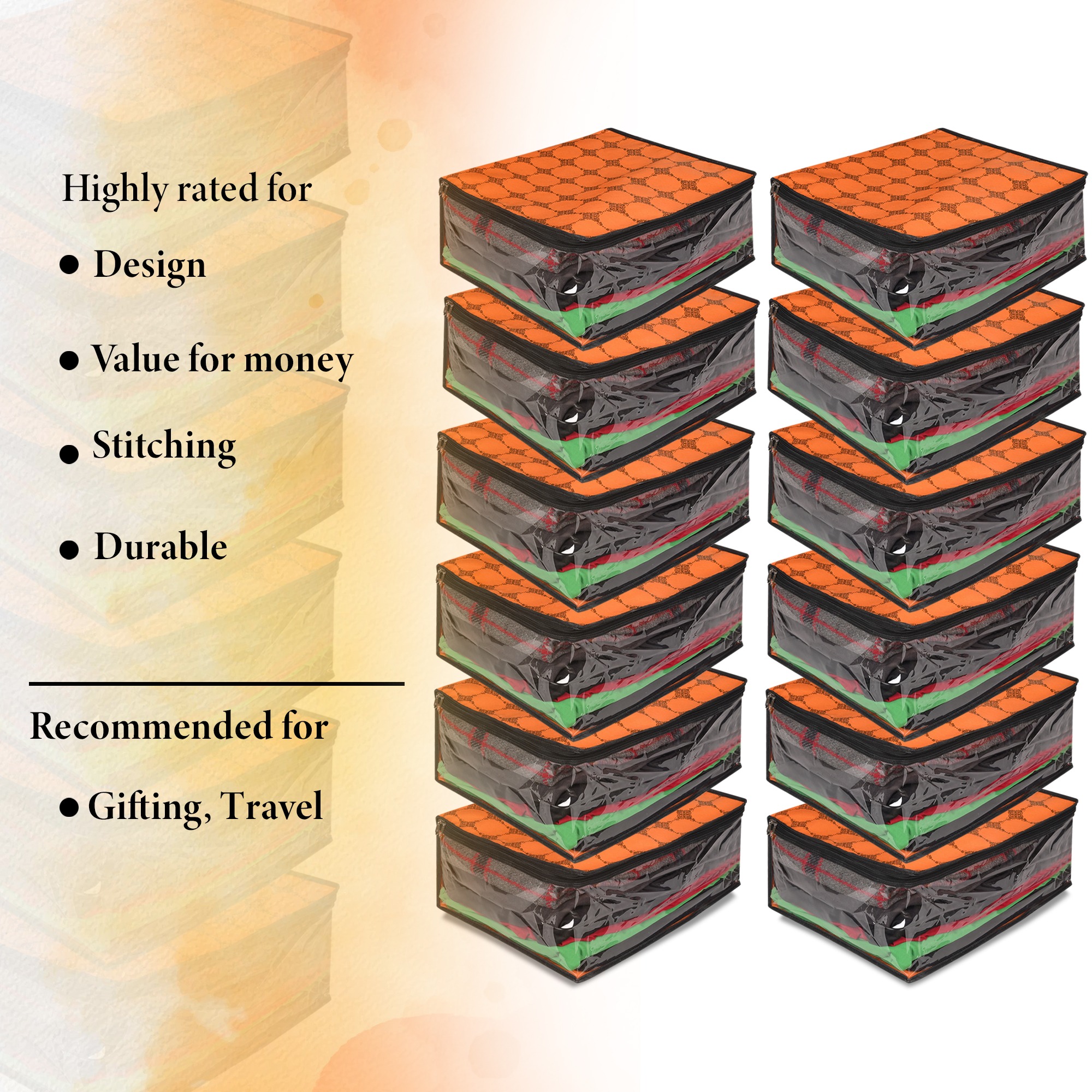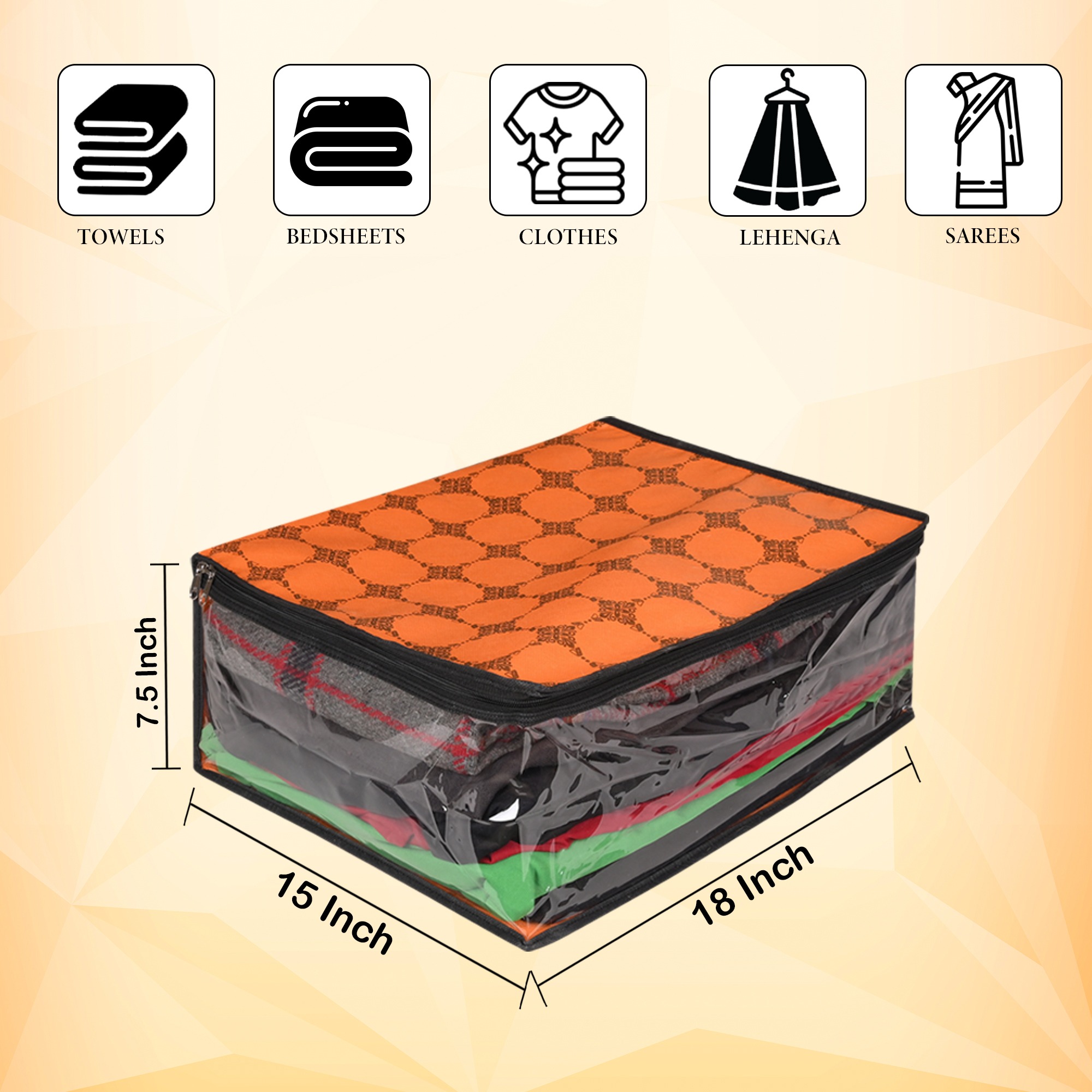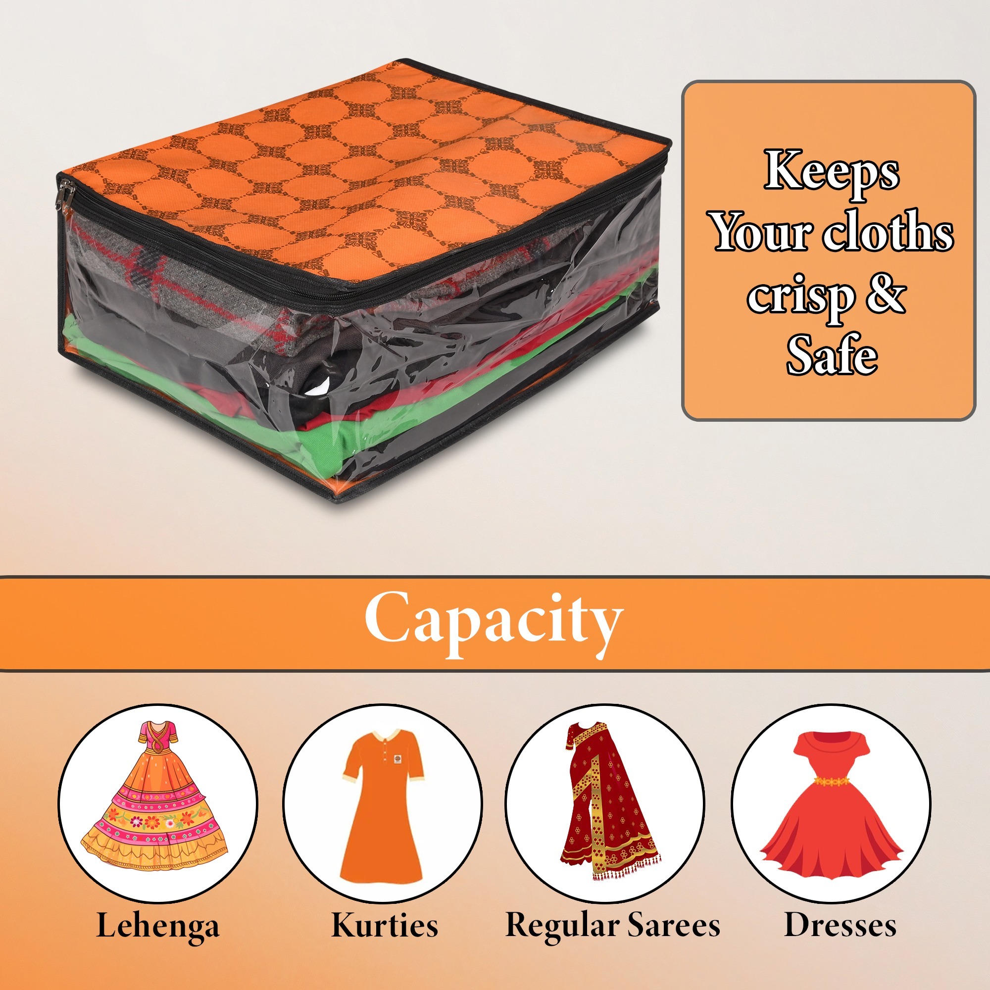 Printed Nonwoven Single Clothes Storage Bag Wardrobe Organizer with 3-Side Transparent for Lehenga, Suit, Dress & Accessories