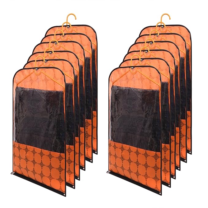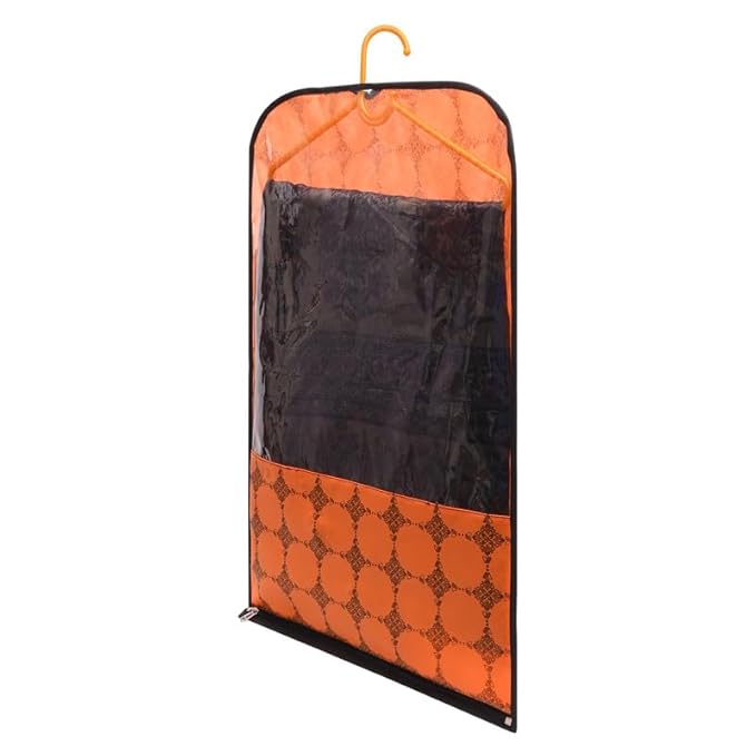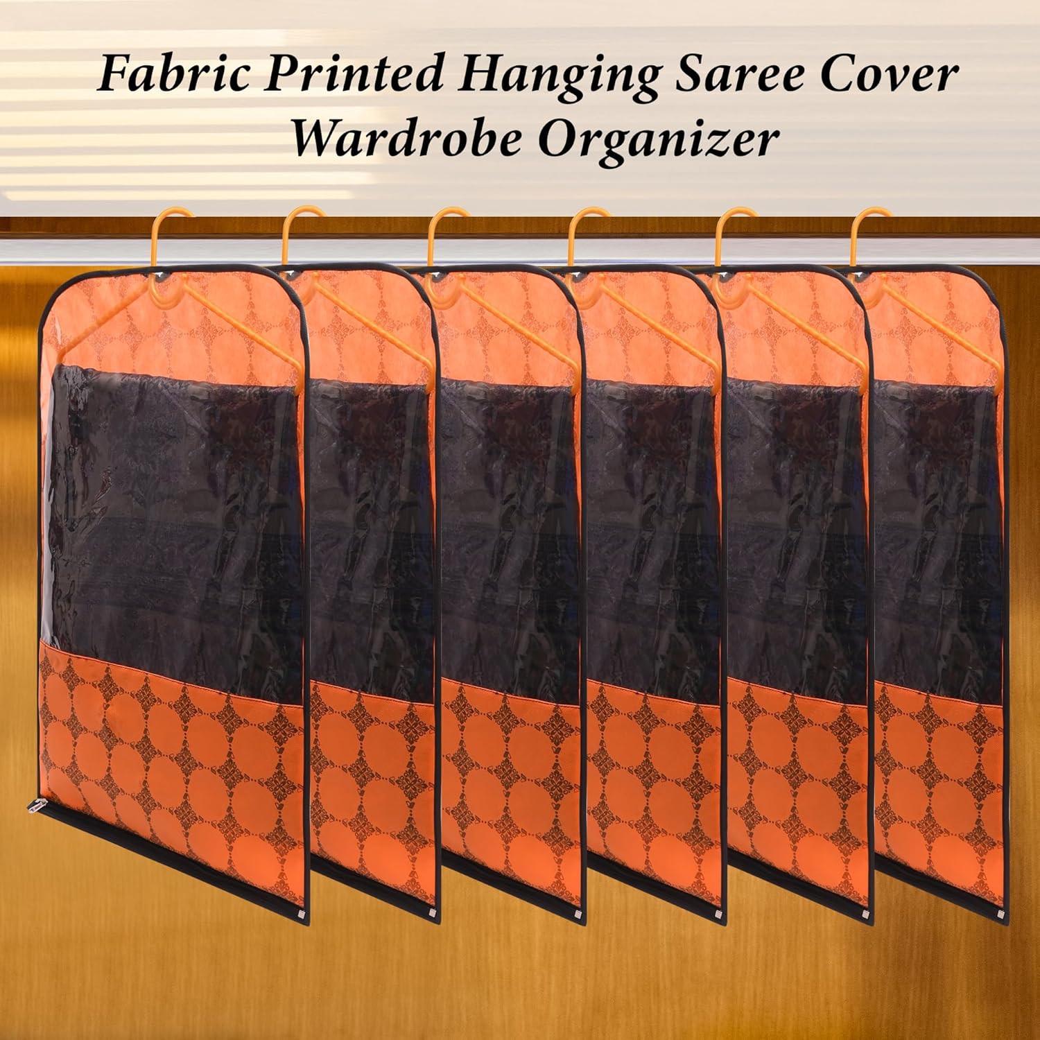 Printed Nonwoven Single Hanging Saree Cover Clothes Storage Bag Wardrobe Organizer with Front Transparent for Lehenga, Suit, Dress & Accessories (Hanger not Included)
