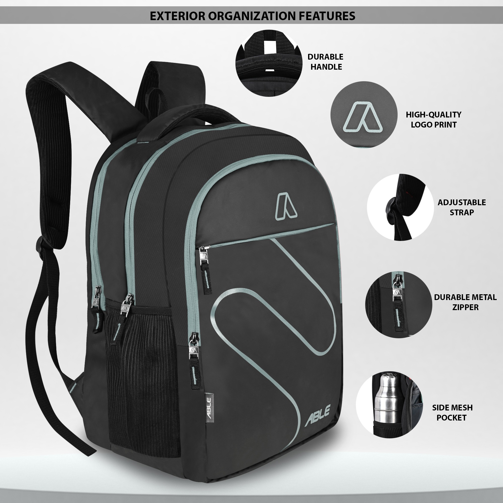Multiple Compartments Comes with multiple pockets to keep items organized like stationery, bottles, and gadgets.